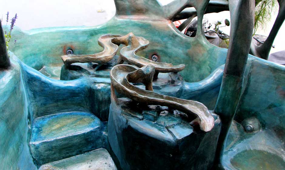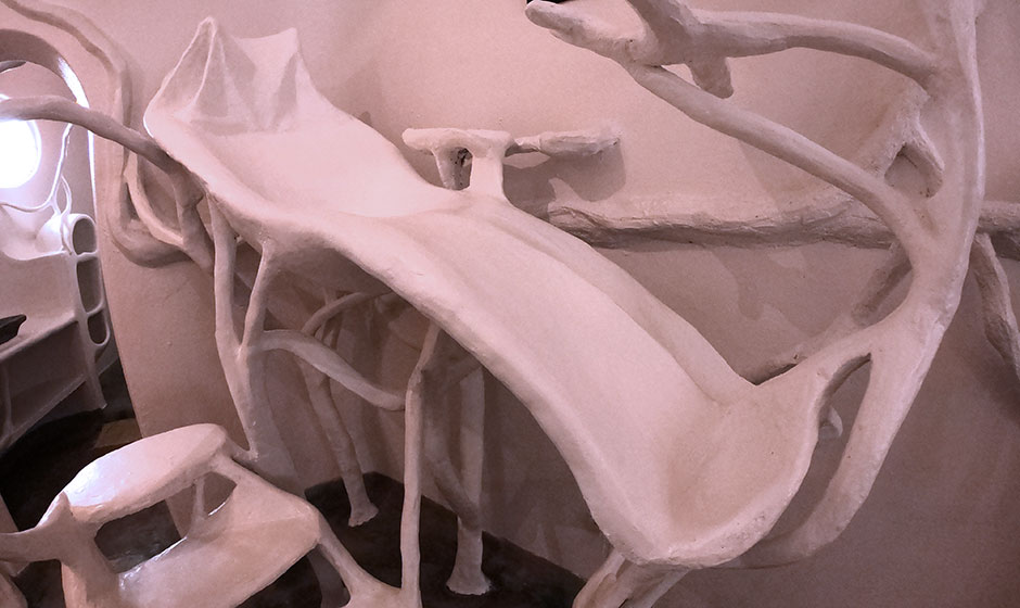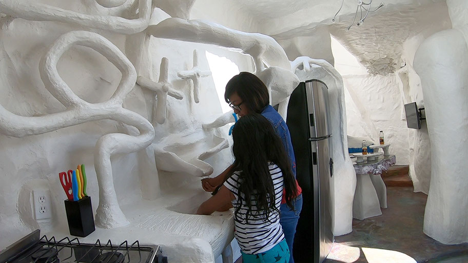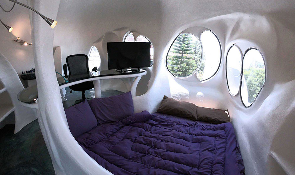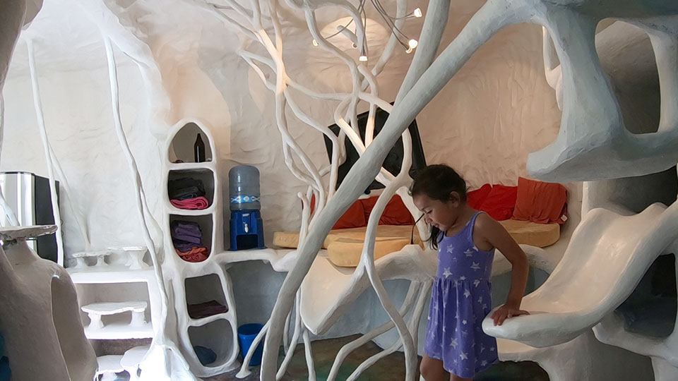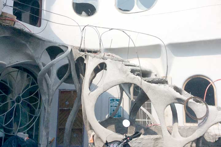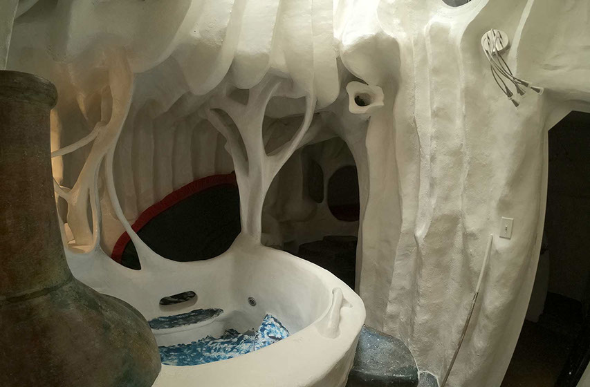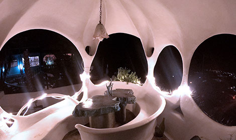 How do you make these crazy houses? And, do you take a lot of drugs? The answer to the 2nd is, no, only the occasional aspirin. When it comes to designing the rooms in the house, everything starts out with some curves in the computer, and a few dreams. Designs are drafted out in 3D on the computer, and re-worked. My team of artist cement workers see the designs from many different perspectives. The curves are then roughed out using plastic tubing, to actual size. The forms are first built in metal bar and wire mesh. The wire mesh is filled with cement. A smooth finished top coat of cement completes the surface. The magical design is transformed from the computer to something real. Wow, it’s like having a big 3D printer.